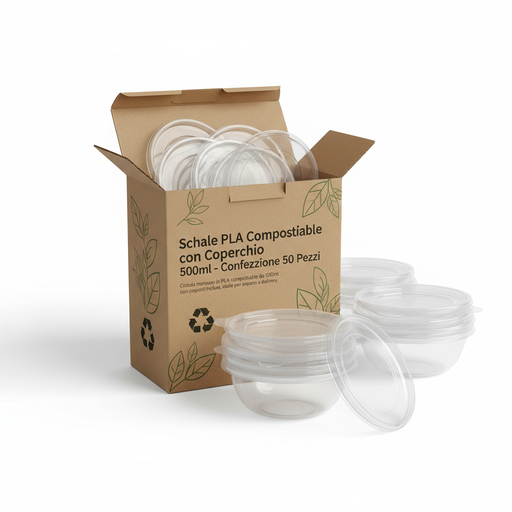 Schale PLA Compostabile con Coperchio 500ml - Confezione 50 Pezzi