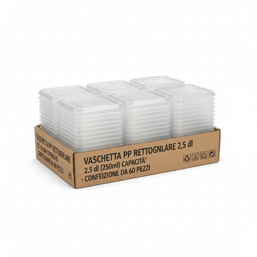 Vaschetta PP Rettangolare 2.5 dl con Coperchio - Confezione da 60 pezzi